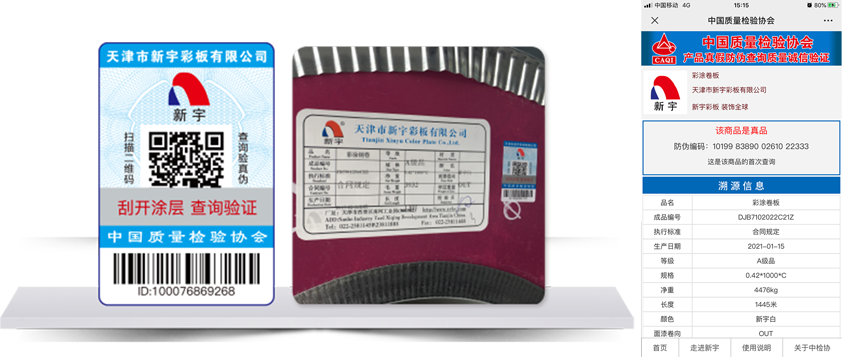 企業(yè)在生產(chǎn)過程中,將產(chǎn)品的編號、執(zhí)行標(biāo)準(zhǔn)、生產(chǎn)等級、生產(chǎn)日期、產(chǎn)品規(guī)格和質(zhì)檢員等一系列生產(chǎn)溯源信息打印到標(biāo)簽上,并自動將溯源信息與二維碼進(jìn)行關(guān)聯(lián)。購買產(chǎn)品后可以直觀查看標(biāo)簽上的產(chǎn)品溯源信息,還可以掃描二維碼在查驗(yàn)產(chǎn)品的真?zhèn)蔚耐瑫r(shí),同步核查掃碼頁面的溯源信息與標(biāo)簽上的信息是否一致,從而實(shí)現(xiàn)產(chǎn)品的生產(chǎn)流程追溯。
