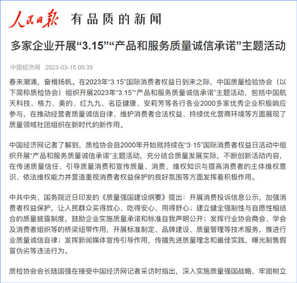 中國質量報:凝心聚力譜寫引導質量消費新篇章——中國質檢協會組織兩千多家企業開展“產品和服務質量誠信承諾”主題活動